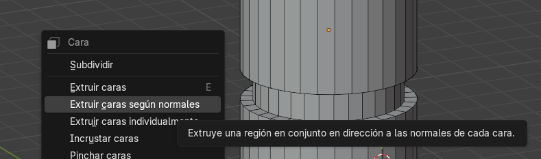 Con la S lo ponemos mas grande, ahora usamos la I para generar otra cara y E para extruir hacia abajo
