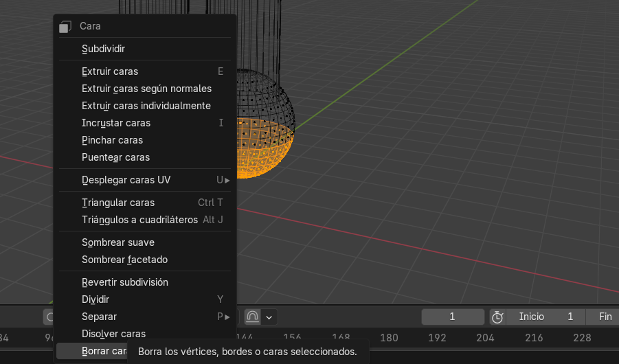 Ponemos la esfera debajo de la pierna, ponemos modo Rayos X y seleccionamos la mitas para borrarla