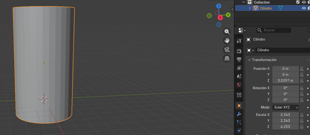 Vamos hacer el cilindro mas alto con la Escala Z
