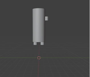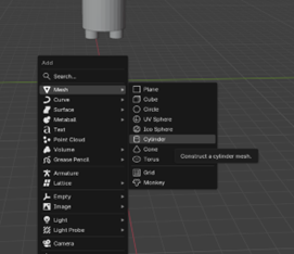 Nuevamente, se utilizó el menú Add (Shift + A) → Mesh → Cylinder para insertar la nueva figura en la escena. Una vez creado, se ajustó su escala utilizando la tecla S para reducir su tamaño general, manteniendo proporciones adecuadas en relación con el cilindro principal.