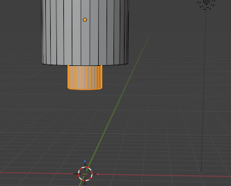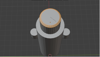 Primero, se seleccionó el cilindro del cuerpo y se ingresó en Modo Edición (Tab). Luego, en modo de selección de caras o aristas, se eligió la zona donde se deseaba crear el borde.