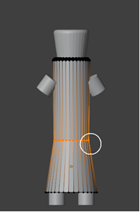 Una vez definidos los detalles básicos del cuerpo, se procedió a modificar su forma para simular la parte inferior del uniforme, similar a una falda característica del cascanueces.