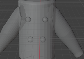 Una vez definido el uniforme del cascanueces, se procedió a modelar los botones decorativos ubicados en la parte frontal del cuerpo.