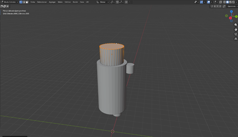 Lo siguiente que haremos será terminar de realizar nuestros brazos, para ello, seleccionaremos la cara de abajo del cilindro y usaremos la ‘tecla E’ para poder hacer el brazo más largo.