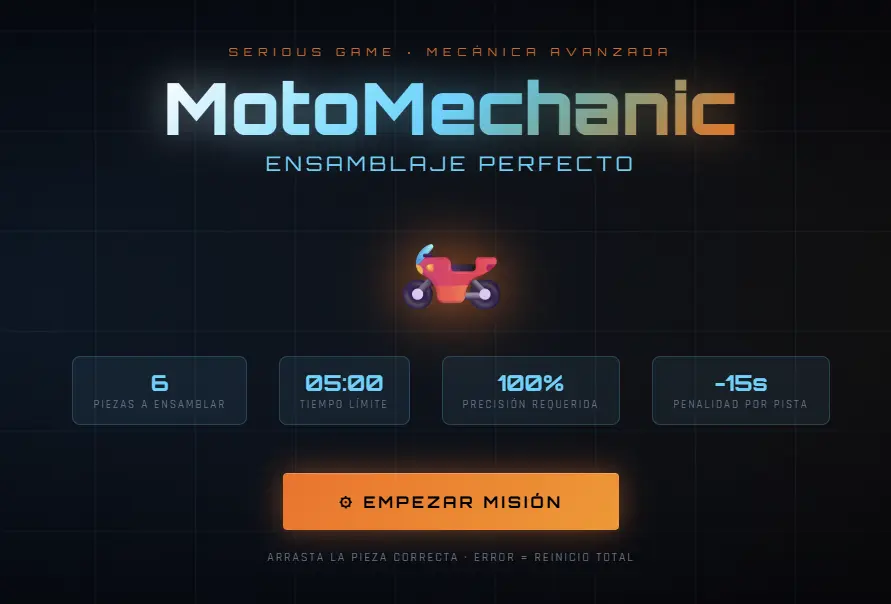 En este artículo, detallaré el proceso de ingeniería, diseño y lógica detrás de “MotoMechanic”, un serious game desarrollado con la asistencia del modelo de lenguaje Claude. Este simulador fue diseñado específicamente para entrenar la memoria espacial y técnica en el ensamblaje de motocicletas, demostrando cómo la IA puede acelerar el desarrollo de software educativo desde la conceptualización hasta la ejecución del código.