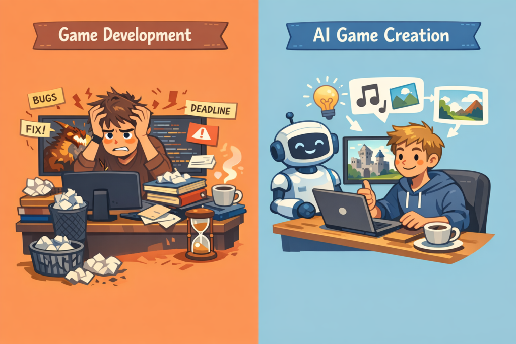 La IA ha transformado radicalmente el proceso de creación de videojuegos. Anteriormente, desarrollar un videojuego requería un gran equipo multidisciplinario. Sin embargo, hoy es posible lograr resultados notables incluso trabajando de manera individual.