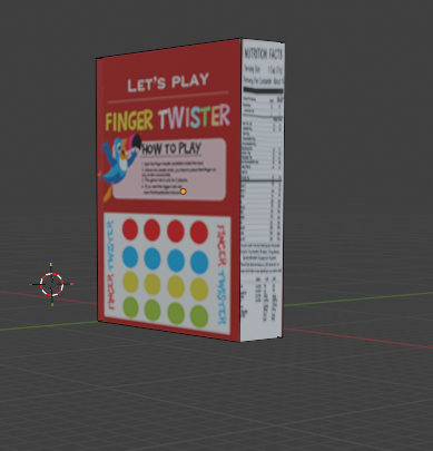Vista de la parte trasera de la caja Rotamos la cámara para ver la parte de atrás de la caja. Se puede ver el diseño de la parte trasera con la sección de “Let’s Play Finger Twister” y la tabla nutricional en el costado. Todas las caras del cubo tienen su parte correspondiente del diseño.