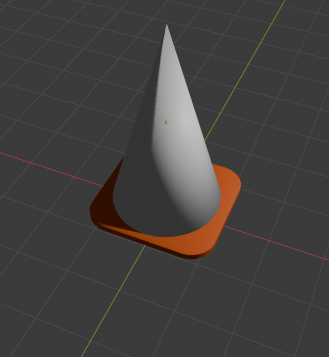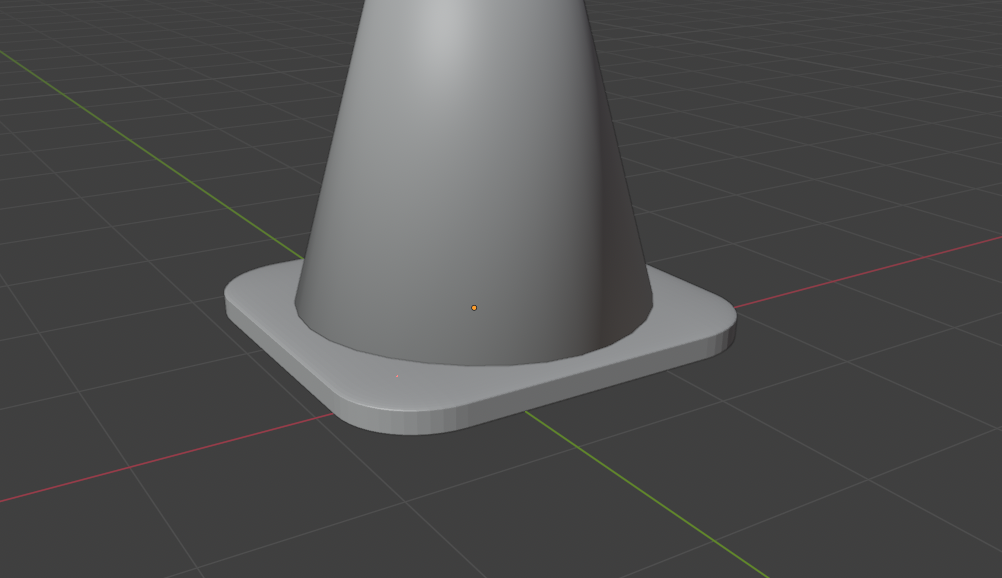Vista de cerca de la base Aquí vemos de cerca cómo quedó la base del cono después del suavizado. Se puede notar que los bordes de la base también quedaron redondeados y sin aristas duras. Esto se ve muy bien y es el efecto que queremos.