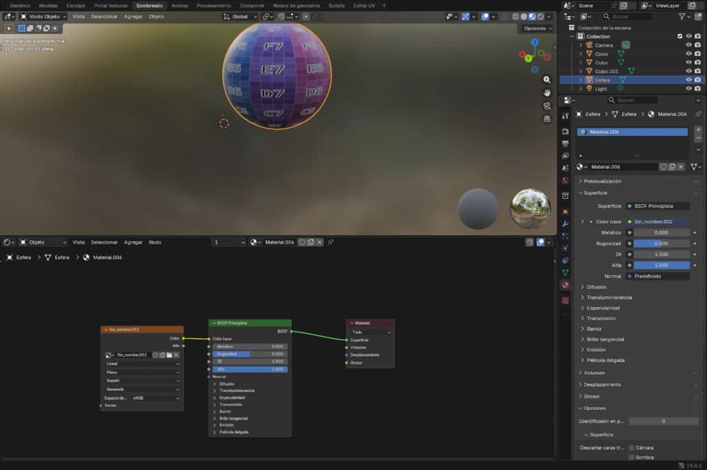 - El uso de materiales y nodos en el editor de sombreado complementa el proceso de texturización, ya que permite modificar propiedades como rugosidad, especularidad y relieve (Normal Map). Esto demuestra que la textura no solo aporta color, sino también interacción con la luz y sensación de materialidad.