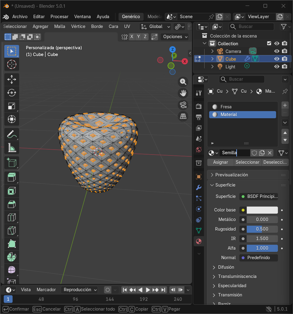 PIXXO 3D. (2025, 24 junio). Blender | Make a Strawberry | Tutorial [Vídeo]. YouTube. https://www.youtube.com/watch?v=Czt6PWOOYK8