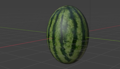 Es con eso último que hemos terminado de modelar y texturizar paso a paso en Blender una sandía, teniendo como resultado lo siguiente: