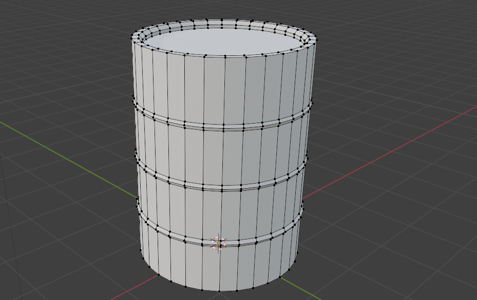 Posteriormente, escalamos un poco hacia afuera con la tecla S la mitad de cada sección de cortes, con lo que le daremos la forma final al barril: