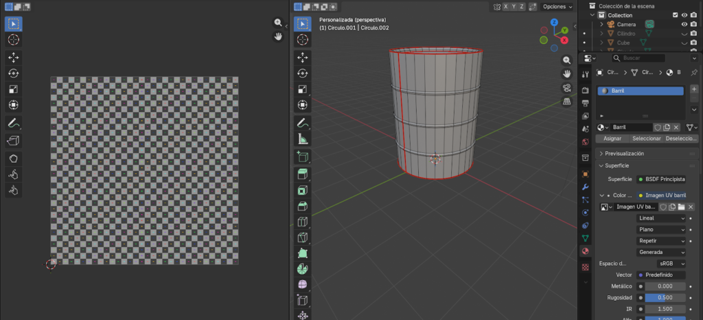 Lo que haremos a continuación será agregar la textura para que quede como un barril. Añadiremos la imagen y así tendremos el barril: