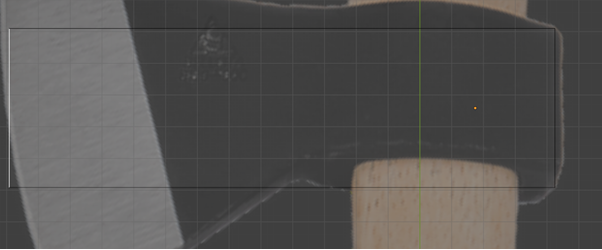Usamos Shift + A para colocar el plano sobre la parte metálica de la imagen de referencia y comenzamos a ajustar sus aristas para darle la forma básica de la hoja del hacha.