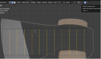 Luego, presionamos Control + R para añadir subdivisiones y activamos la opción de Edición Proporcional, lo que nos permitirá modificar la geometría con mayor suavidad.