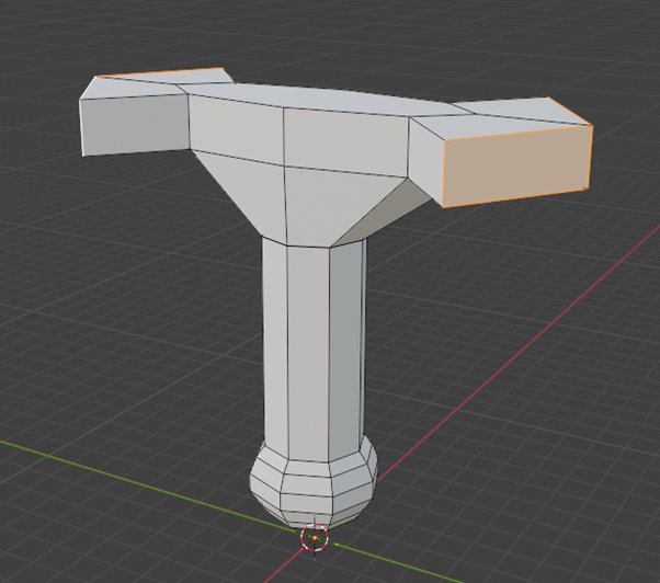 Seleccionamos cada arista y, utilizando la tecla G, las movemos hasta obtener la forma deseada, similar al diseño del hacha.
