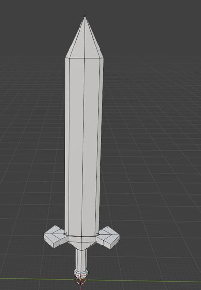 Después, utilizamos nuevamente E para extruir hacia arriba y con S ajustamos la escala hasta darle la forma característica de la guarda de la espada.
