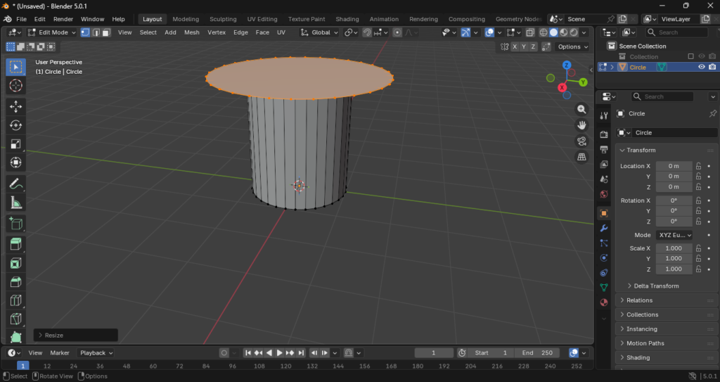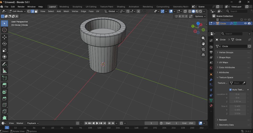 Al añadir un círculo (Shift + A > Mesh > Circle), es crucial definir el número de vértices. Para un barril de estilo mid-poly, 32 vértices suelen ser suficientes para mantener una curvatura suave sin sobrecargar el procesador.