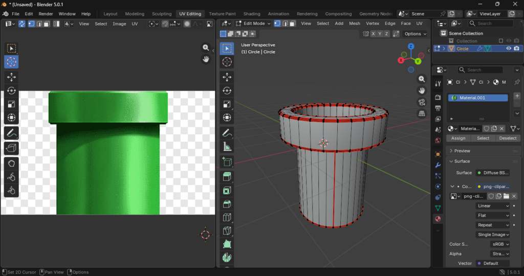 1. En el UV Editor, verás que la tapa se convierte en un mapa circular plano.