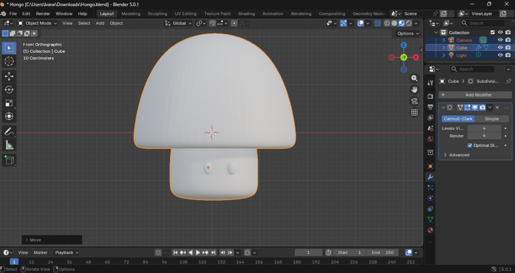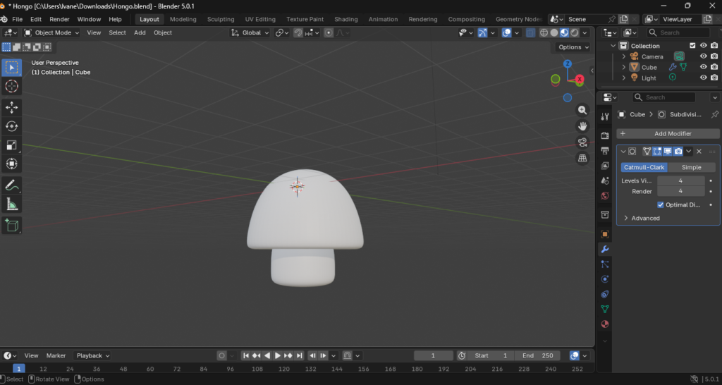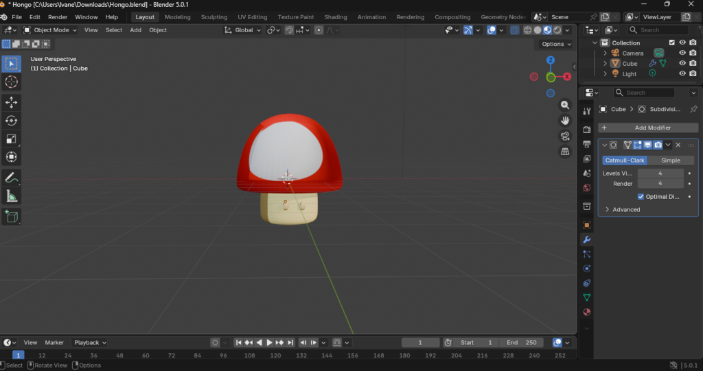3. Unión Visual: Es fundamental que la tapa y el tallo, aunque sean objetos o mallas distintas, mantengan una proporción armoniosa para conservar el estilo cartoon.