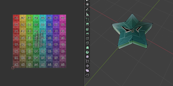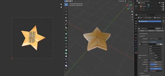 Finalmente obtenemos una estrella tridimensional modelada y texturizada correctamente, aplicando herramientas básicas como escalado, fusión de vértices, loop cut y edición UV.