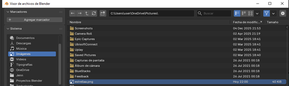 Cargamos la imagen previamente elegida y verificamos en modo Vista Material que la textura se aplique correctamente.
