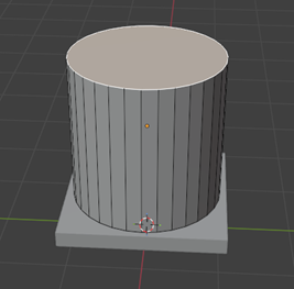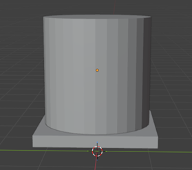 Movemos el cilindro utilizando la tecla G y luego G + Z para ubicarlo exactamente encima de la base. Verificamos que esté centrado correctamente para mantener simetría en el modelo.