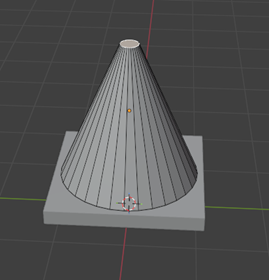 Luego utilizamos la tecla S para escalarlo de manera general y posteriormente S + Z para reducir su altura. Es importante que la base quede proporcional, ya que soportará el cuerpo del cono.