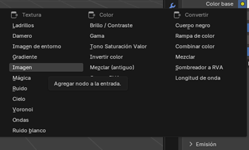 Vamos al panel de Materiales y creamos un nuevo material y seleccionamos la opción “Color Base” y seleccionamos “Imagen”.