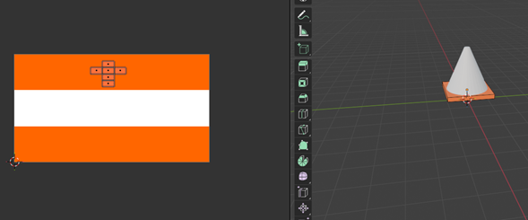 Seleccionamos la parte superior del cono. Repetimos el proceso de mapeo UV. Ajustamos la textura hasta que las franjas queden alineadas correctamente, simulando el diseño típico de un cono de tránsito.