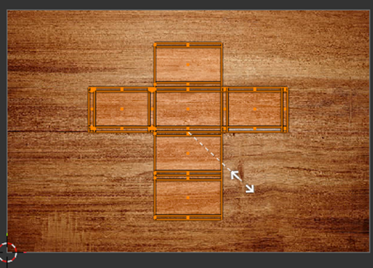 Utilizamos la tecla S para escalar el cubo y luego S + Z para reducir su altura, convirtiéndolo en una tabla más delgada.
