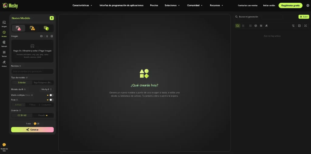 El usuario introduce una descripción (prompt) de lo que desea crear —por ejemplo, un objeto, personaje o entorno— y la plataforma genera automáticamente un modelo 3D con forma, materiales y texturas coherentes con la descripción. También puede trabajar a partir de imágenes de referencia para mejorar la precisión.