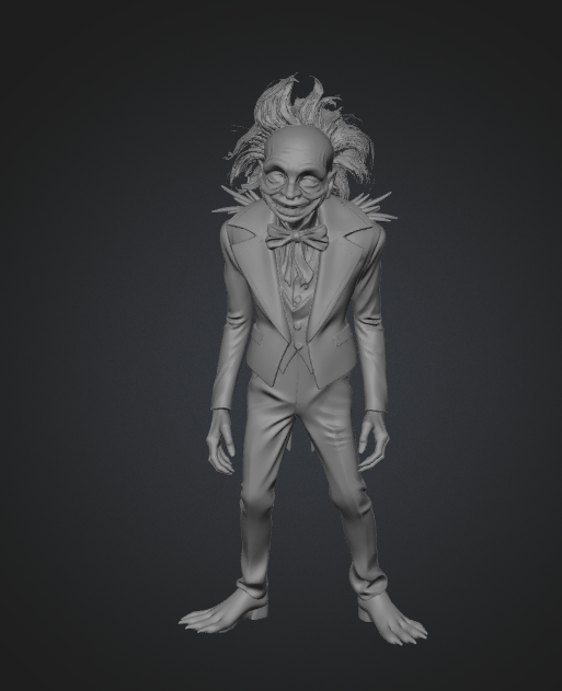 Modelo 3D de Largo (Lurch) en T-Pose para rigging. Cuerpo: Estatura extrema (2.10m proporcionales), complexión delgada pero de hombros anchos y rectos, con brazos inusualmente largos. Cabeza: Forma rectangular y alargada, frente prominente, piel de tono gris cenizo y expresión impasible de ‘ojo muerto’. Cabello: Corte tipo ‘flat-top’ o corto muy pegado, de color negro azabache. Vestimenta: Frac negro clásico desgastado, pantalones de vestir rectos, camisa blanca con cuello de pajarita y un corbatín negro pequeño; los zapatos son botas grandes y pesadas de color negro mate. Estilo gótico clásico, texturas de tela de lana antigua y piel mortecina, alta resolución, vista frontal.
