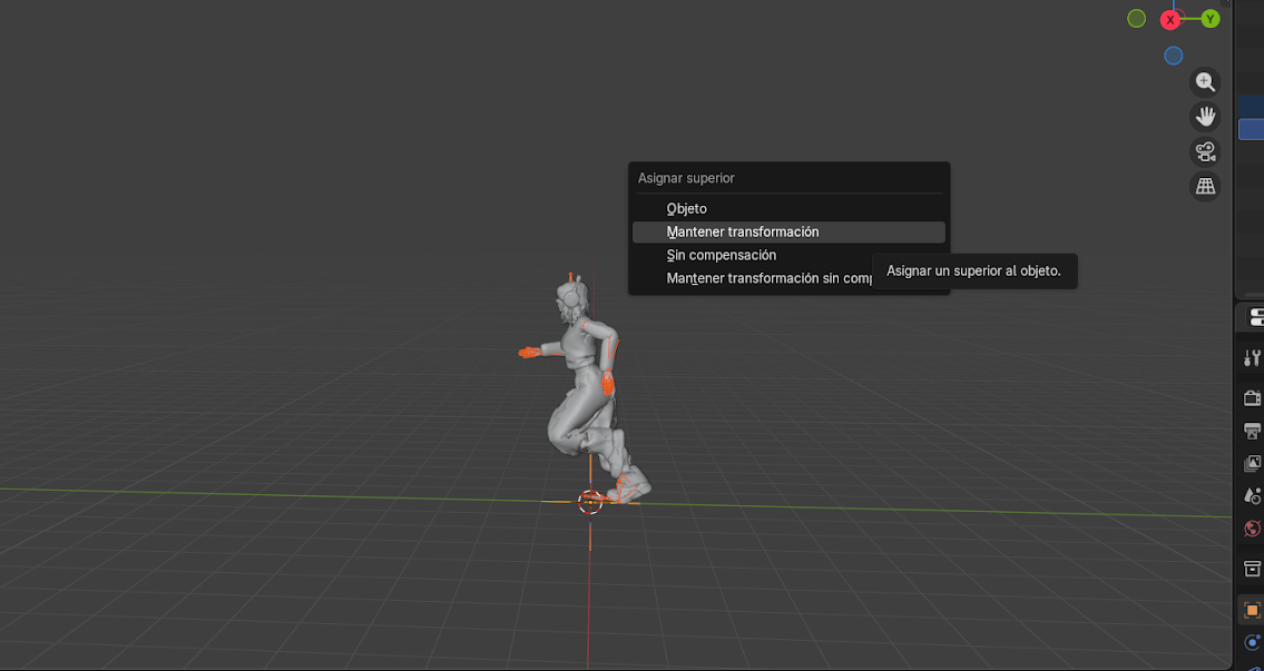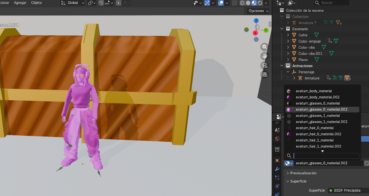 Este proceso garantiza que el personaje conserve correctamente sus texturas durante la animación.