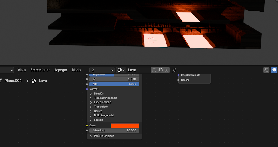 Para crear zonas de lava: