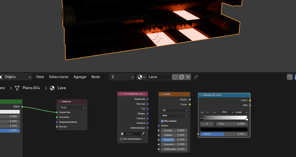 Esto genera huecos donde se aplicará el material de lava.