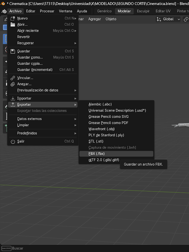 Proceso de creación de la cinemática en Blender