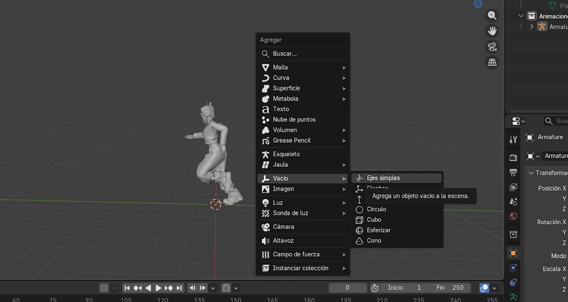- Asignar como objetivo el Armature.
