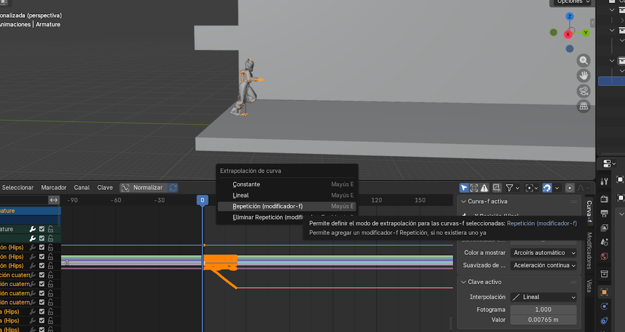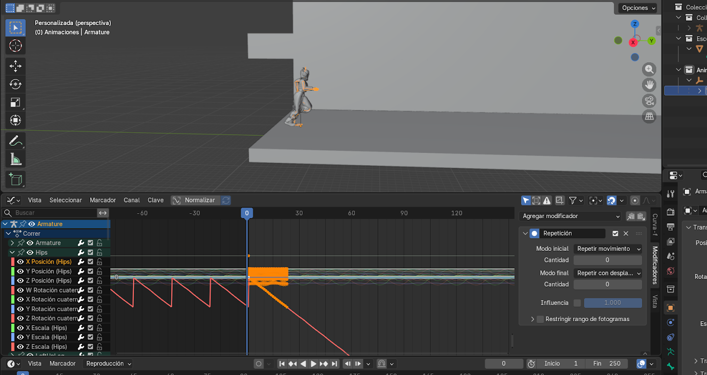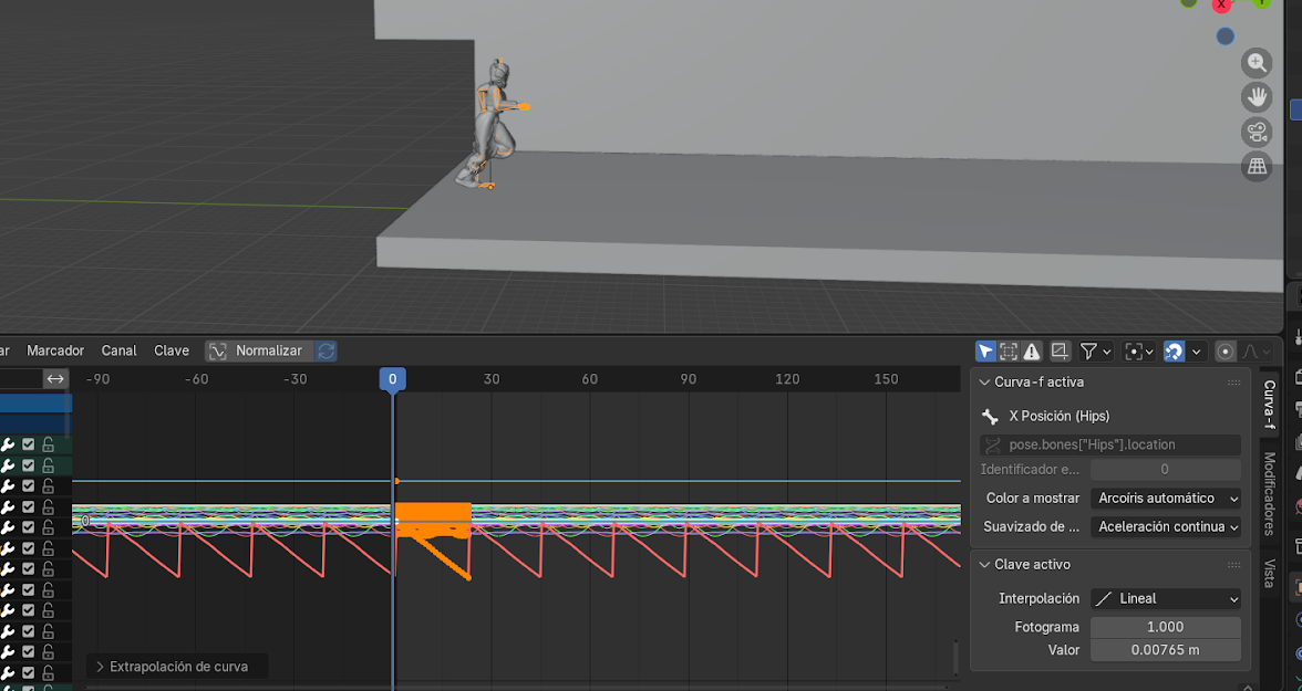 Esto crea un keyframe que fija la posición final del personaje.