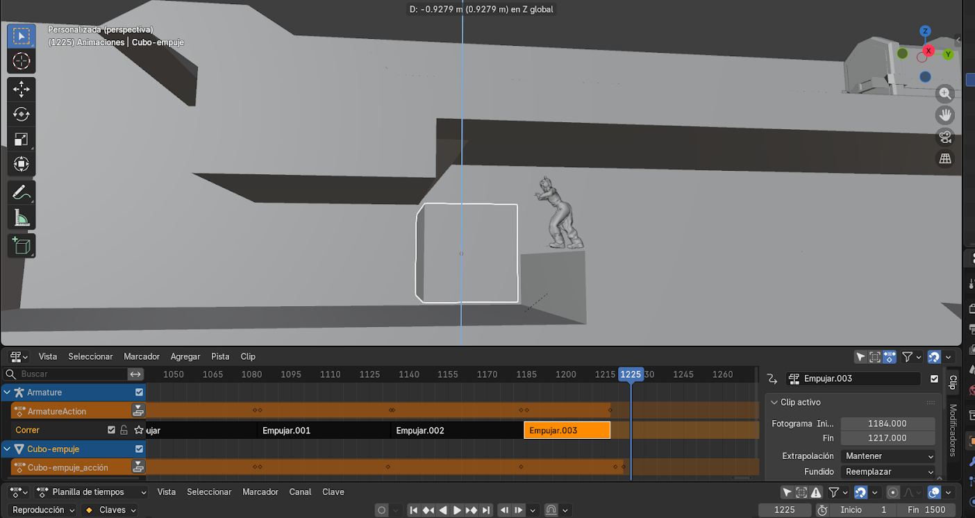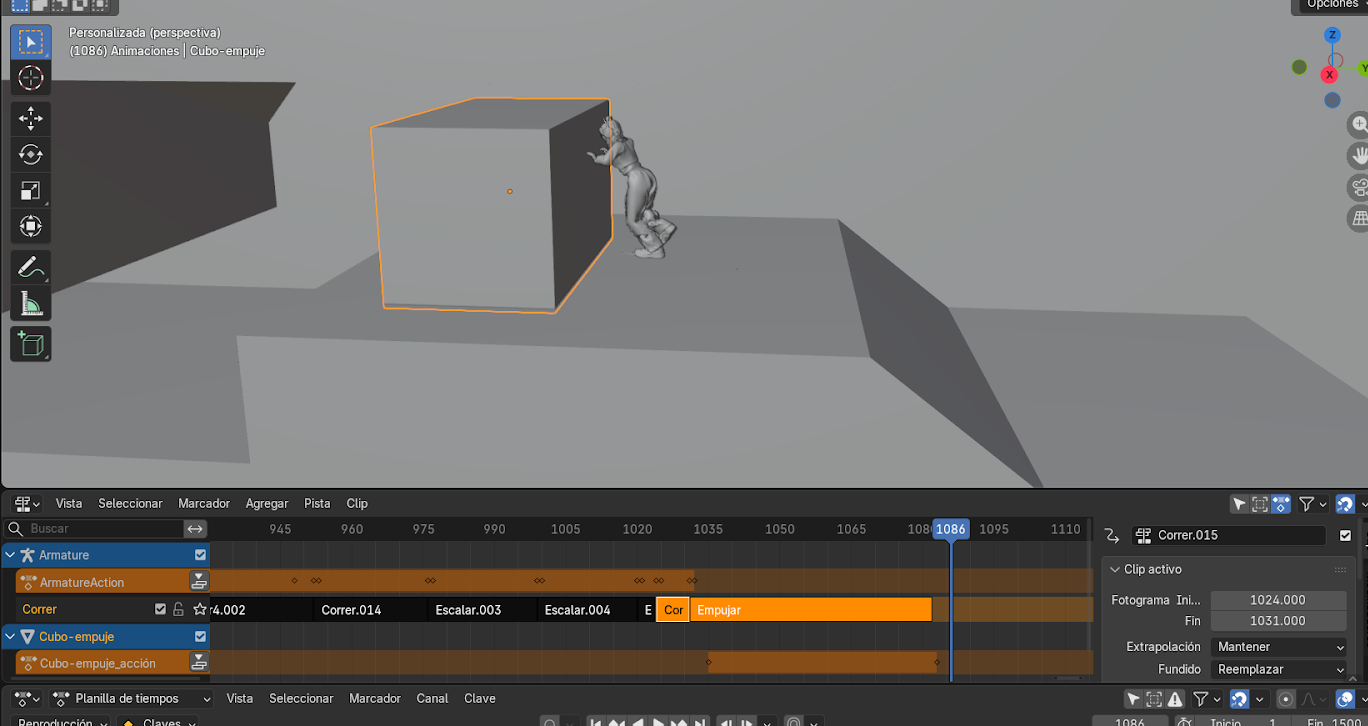 Animación de interacción (empujar objeto)