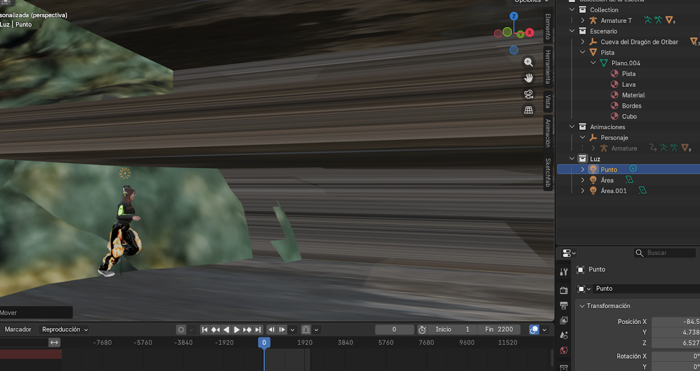 Para mejorar la visibilidad de la escena y resaltar al personaje durante la cinemática, se debe configurar una luz que acompañe su movimiento.