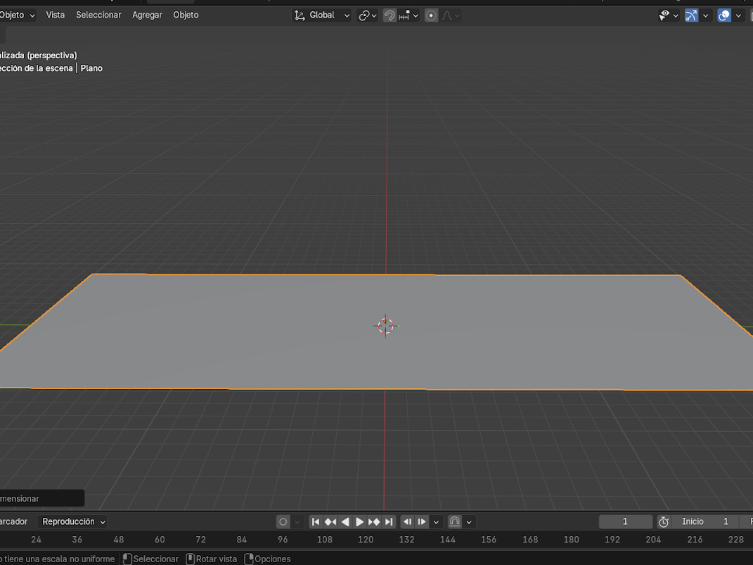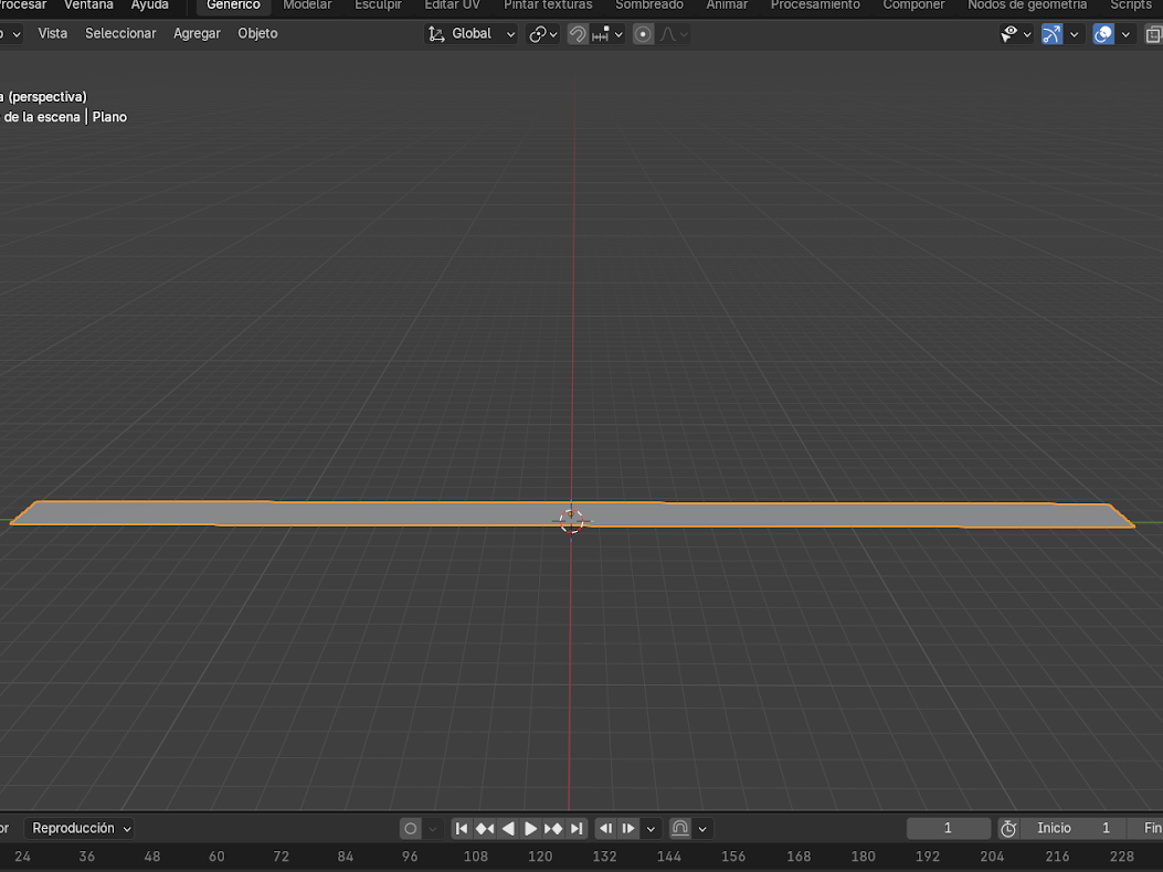 - Agregar un plano con Shift + A → Malla→ Plano.