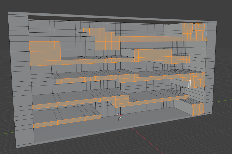 - Seleccionar bordes y extruir para generar relieves.