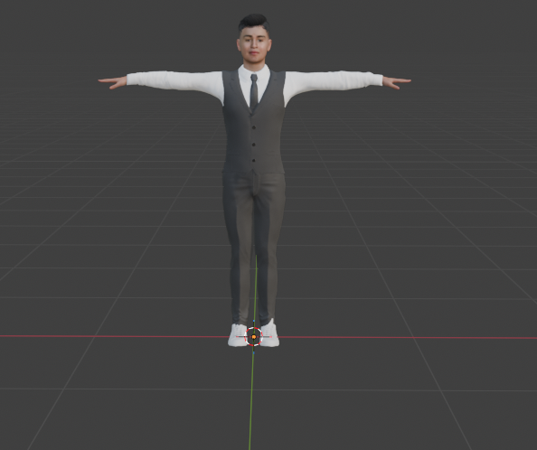 En este caso nuestro avatar asumirá el papel de juez del combate, por lo que se eligió una vestimenta formal y elegante acorde a su autoridad dentro de la escena. El resultado es un personaje completamente personalizado que nos representa dentro de la animación, logrando una conexión directa entre el creador del proyecto y la narrativa de la cinemática.