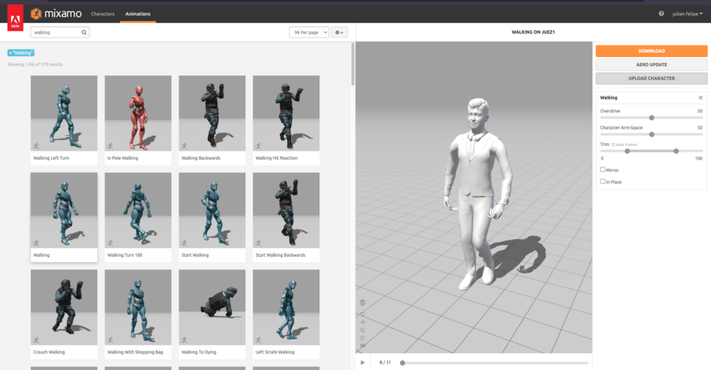 - Aplicar animaciones profesionales con Mixamo de Adobe
