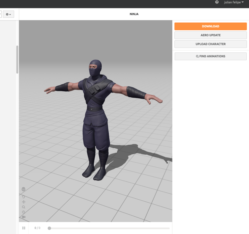 Una vez seleccionados en Mixamo procedemos a descargar cada personaje en formato FBX con skin incluido y posteriormente aplicarle sus animaciones correspondientes — entrada, posición de combate, ataque, esquive y derrota o victoria — para luego importarlos junto a todas sus animaciones en Blender y ubicarlos dentro del escenario del dojo.