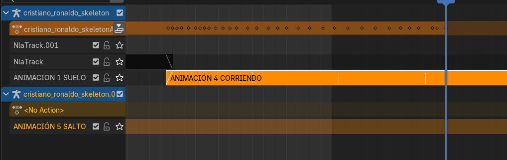 Es fundamental comprender que el NLA funciona mediante un orden jerárquico. Si dos clips de animación se superponen en el tiempo en diferentes pistas, Blender dará prioridad visual al clip que se encuentre en la superior.