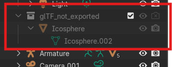 Al importar el .GLB original a Blender, el software genera elementos adicionales no deseados, como una esfera de referencia denominada “Icosphere“. Para un pipeline limpio, es necesario eliminar la colección “glTF_not_exported” y la Icosfera antes de convertir el archivo a formato .FBX.