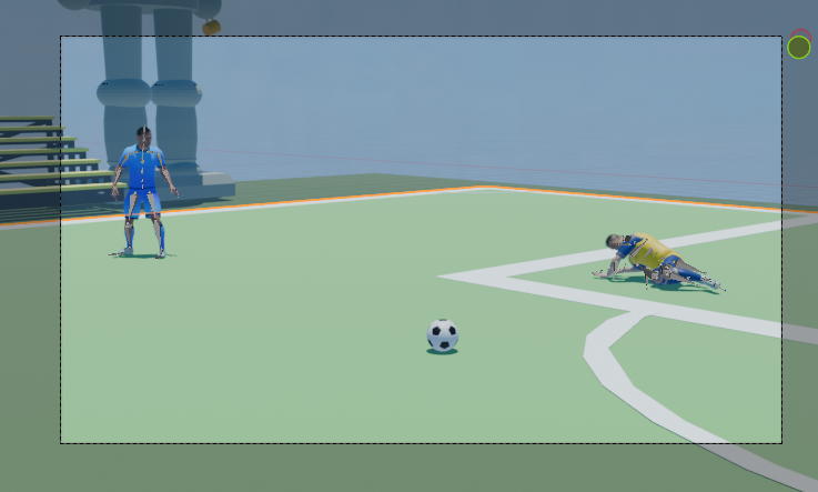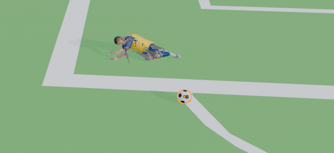 Para la narrativa, era indispensable introducir un elemento de conflicto en la jugada. En este caso, integramos un tercer personaje que asume el rol del jugador defensor, cuyo objetivo es interceptar al jugador principal con una barrida táctica.
