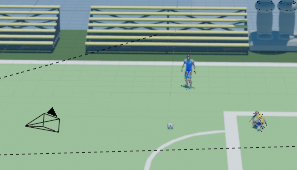 Replicamos este proceso a lo largo de toda la escena. Para evitar que los planos fueran completamente estáticos, animamos un par de cámaras utilizando la función de Auto Keying, la misma técnica empleada para el balón.